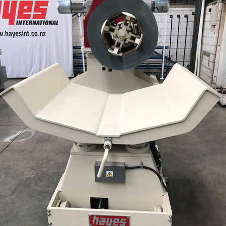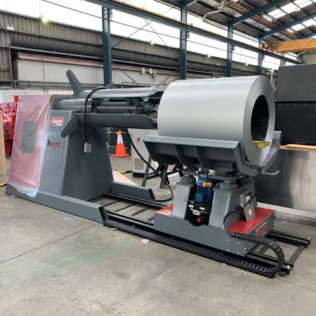 The Hayes Coil Car has a fabricated steel design finished in a lacquer paint finish to match your machine line. An electric gear motor powers the coil car forwards and backwards across a set of heavy-duty steel rails. Raising and lowering the coil cradle is performed via a hydraulic cylinder and an onboard power pack is contained within the coil car's body.