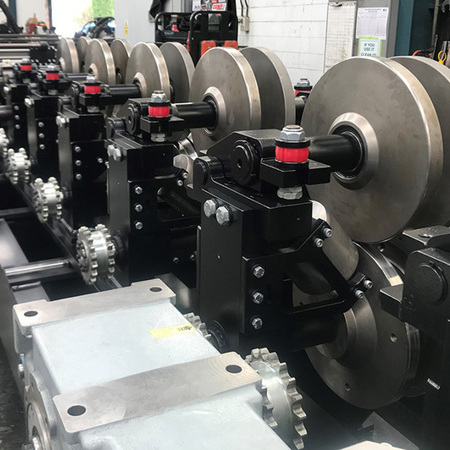 - AC Electric gear motors coupled via chain and sprocket transmission drive the main tooling rolls.