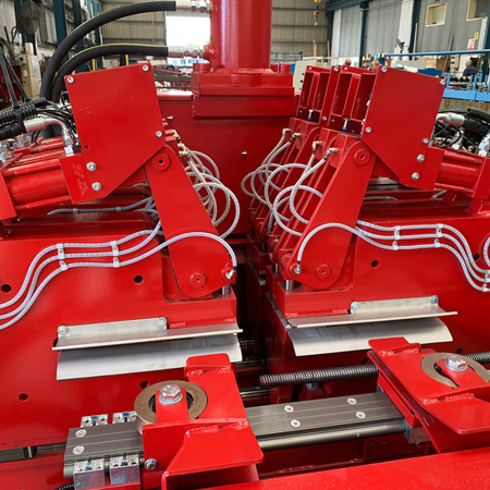 - Changeover tooling is mounted on a chrome bar that can be rotated 180 degrees for Cee to Zed changeover and moved inwards or outwards to achieve the correct web thickness.