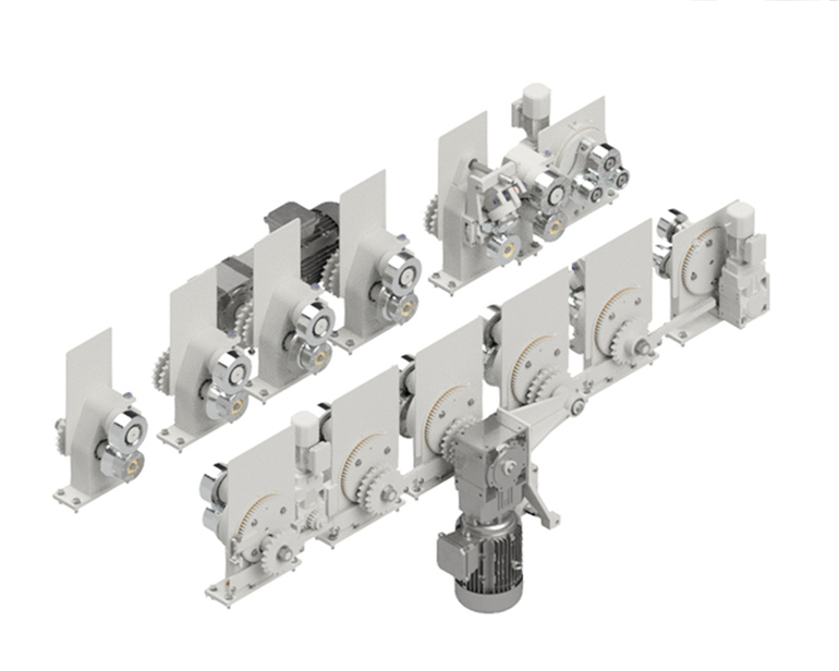 - AC electric gear motors coupled via chain and sprocket transmission are used to drive the main tooling rolls.