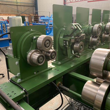 - 'Operator' side forming stations mounted on a movable raft for accurate and rapid adjustment to any size within the machine specifications.