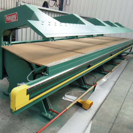 Hayes Sheet Metal Folders are an efficient and reliable way to produce folded metal parts. They are a fabricated steel construction with accurately machined working surfaces and a full-length backbone chassis to eliminate flexing. Available in 6-meter, 8-meter, and 10-meter lengths with either 16ga or 14ga capacity.