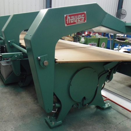 An optional apron-mounted slitter can be included, allowing the operator to cut products after folding when required. Hayes Folders also feature a full-length back gauge stop with numerical control for position and fold angle. The operator console is mounted to the chassis on a swiveling arm fitted with a touch screen control and fully instrumented with functions for clamp, bend and slit. Onboard software allows for a parts library to save and store programs for future use.
